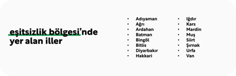 Sanayi ve Teknoloji Bakanlığı’nın 2017 yılında hazırladığı Sosyo-Ekonomik Gelişmişlik Endeksi (SEGE) çalışmasına göre Türkiye’deki şehirler SEGE bakımından 6 kademeye ayrılıyor. En düşük SEGE puanına sahip olan 6. kademe bölgesindeki illerin tamamı Türkiye’deki Kürt nüfusun yoğun olduğu şehirler.* Biz 6. kademedeki illerin oluşturduğu kümeye “Eşitsizlik Bölgesi” diyoruz.